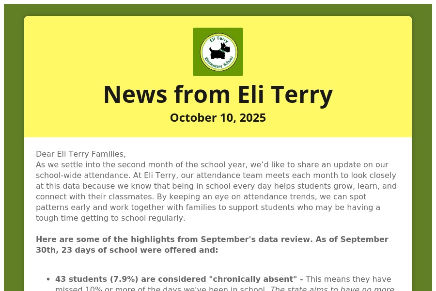 News from Eli Terry      October 3, 2025               Dear Eli Terry