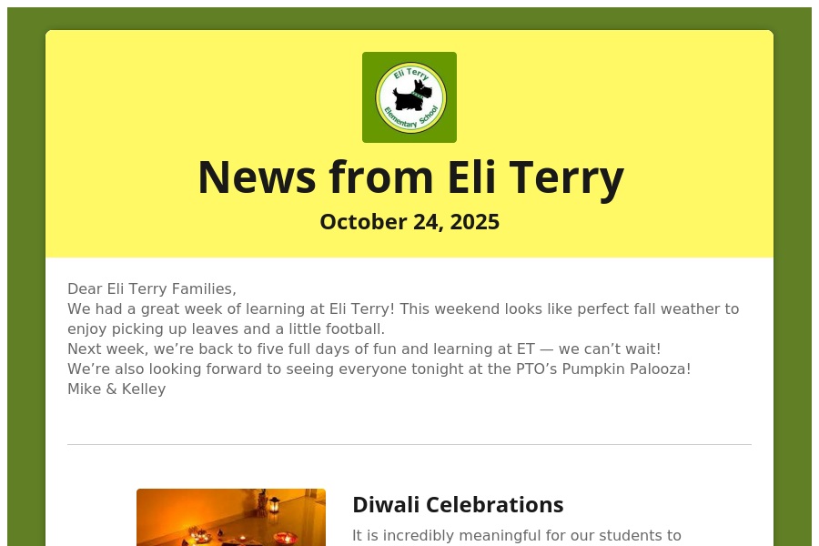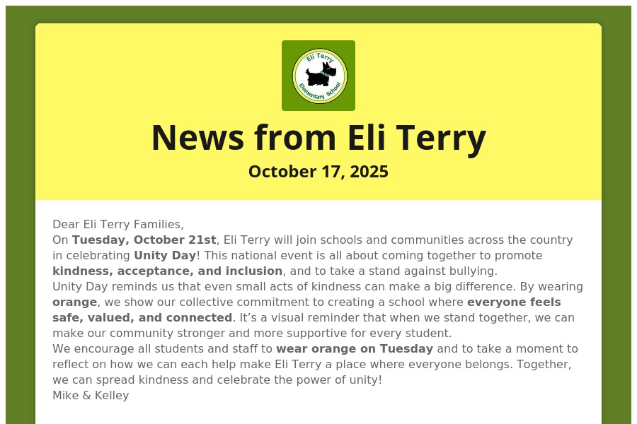News from Eli Terry      October 24, 2025               Dear Eli Terry